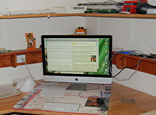Being ex-computer programmers and reluctant to discard working machines, we have lots of computers. Also, we favour desk-top machines with large screens, and there is also the need for external disks, routers, printers, scanners and books and manuals.