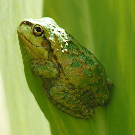 The adults of most species will probably like a moist protected area to spend time in, particularly if it has vegetation which attracts insects for them to eat. But the motorbike and slender tree frogs will happily spend hours in the midday sun in summer on the side of the pond or adjacent vegetation, as long as the water is readily available for a quick "dip" to rehydrate and possibly escape predators. Do not feel the need to provide a log or something similar for them to get in and out of the water - these frogs can get anywhere they like without any help, and often do.