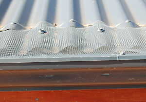 So despite our misgivings, to exclude sticks and leaves, we used a steel mesh product which was tek-screwed down over the gutter. As we feared, this quite expensive (it doubled the cost of the guttering) approach has its problems. While it keeps out leaves and twigs, it is no barrier to seeds, dirt and dust, which even in very limited amounts will support a small forest of weeds growing wherever the water persists for a while. Then the mesh makes the cleaning even more difficult, as we do not want to just squirt through with a hose since this could wash the weeds into our water tank, and may block the downpipes. It turns out that the best approach is to remove the tek screws and metal strip on the front of the gutter (leaving the ones at the back) which allows you to get your hand in to clean out the gunk.