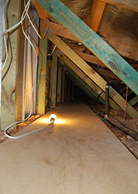 The crawlways have turned out to be very useful, both for tradespeople installing cables, pipes and fittings, but also for us placing insulation batts, and accessing the ceiling space after the house was finished. For example, we had a splitter for the TV signal installed in the ceiling space, and it subsequently needed attention - this was much easier when we did not have to balance on the rafters. The smoke alarms in the atrium are very high up on the wall, so we set them up so that they could be accessed from the back (ie. from the crawlways in the ceiling space).