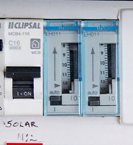The underfloor heating in the bathrooms would be relatively ineffective if we turned it on just when we wanted to have a shower in the morning, so it is controlled by a timer which is set to come on an hour or so before we normally get out of bed. We found that the easiest way to do this was with a timer in the fuse box, and it turns out that these devices are relatively modestly priced given their complexity. Of course using them means that the floor heating needs to have its own circuit; but this would normally be the case anyway.