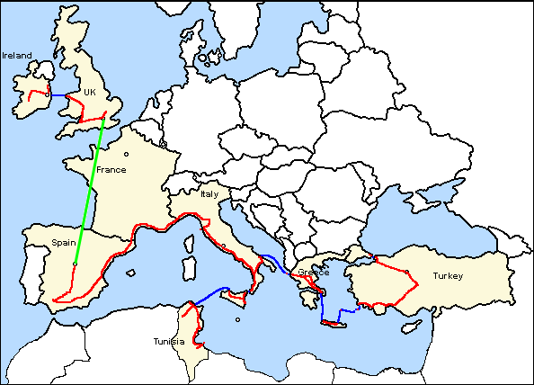 The one serious disappointment was food. Basically, because we were doing a real tourist trip we ate in places that catered to tourists. There was little relief from the pasta and pizza variations offered in every cafe and restaurant, and we were very hard pressed to find good fresh food. We tended to make up our own lunch from produce bought in markets, and we carried muesli for breakfast, but dinner was sometimes a real compromise. And don't get me started on iced coffee - something loved by Australians but totally foreign to Europe. Why this obsession with food? We live in the countryside, with a large vegetable garden and small orchard, providing fresh fruit and vegetables, supplemented with lots of other home-grown produce including eggs and meat. We make our own bread, preserves, sauces and even produce our own apple cider and vinegar. Kaye is a good cook (and Geoff can be if he can be bothered) and when we eat out we look for food that is at least as fresh and interesting as we normally have at home. On the whole we didn't find this in Europe, although we were very pleasantly surprised by the variety and quality of cafe and restaurant food in the UK and Ireland, after having experienced truly dreadful meals in England in 1976, and Greece and Turkey did offer a wider choice of foods and some memorable meals.