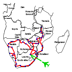 My sister lived in South Africa (Durban), and had done so for eighteen years at the time of this trip. We'd never visited her before because of our aversion to the apartheid system which was in place in South Africa until 1994, but now we were retired and South Africa had changed politically we wanted to travel through the countries of Southern Africa.