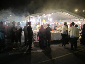 We arrived in the middle of a week of celebrations for the Sultan's birthday. The streets were heavily decorated with elaborate scuptures and lights everywhere, there were firework shows each night, and all through the heart of the city impromptu markets were thronged with people. We had arrived late in the evening, and with little idea of the city we set out immediately to see what was around our hotel. A large food market was established in a small park only a few blocks away, so we walked up into the heart of the city then backtracked to the market to find something for dinner.
