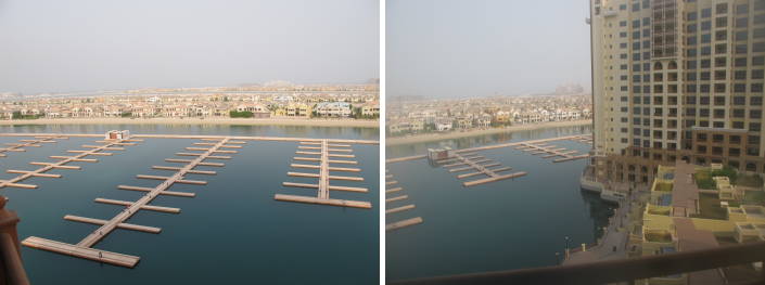 On to Dubai. Well, where do I start? It truly is an amazing place. Kaye's cousins picked up us and whisked us back to their apartment on the Palm Jumeirah. It was the middle of the night and we were very grateful to have family who just let us go to bed and sort things out in the morning. An early rise revealed a remarkable view: an empty marina stretched away in both sides, and across the water sat a fully developed "palm frond", looking like a scene from post-apocalypse movie, with empty houses sitting in majestic splendour, and not a soul to be seen. Apartment towers, sisters to the one we were in, lined the stem of the palm, with only isolated signs of habitation. All the while more and more palatial houses and towering apartment blocks are under construction. As a portend of the gloom settling on the financing of building projects, many of which are sitting unfinished with development monies dried up, the air has its own dull gloom, with the desert sands blowing in, muting the sunlight and casting a pall over the entire city.