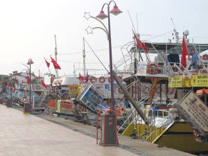 Arrival in Marmaris was at the docks somewhat out of town. We re-oriented ourselves and walked into town. Although Marmaris is an unashamedly brash town, with lots of huge boats along the bay, all touting for business, we had the immediate feeling that we were going to enjoy being in Turkey.