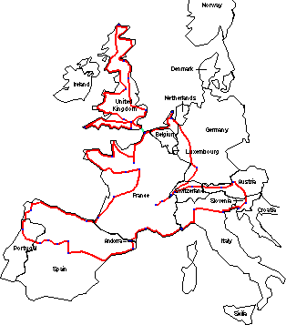 Our 'green paper' in order, we caught the ferry to France. We were first off the ferry at Calais, and drove out onto the wharf, which gradually coalesced into a road. It took a few minutes to realise that we were on the the wrong side of the road - we rapidly switched to the other side of the road, and behind us the string of following cars dutifully switched too, all victims of the 'follow-the-leader' syndrome.