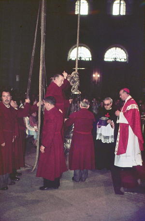 From tiny Andorra we returned to the French coast, arriving to the sound of fireworks. Too late we realised that it was Bastile Day, the banks were shut and we only had enough money to buy a steak with bread (vegetables were extra and we did not have enough franks to pay for them). The next day we changed money then drove up to Arles, then continued along the coast to Monaco and Italy. The coast road in Italy was something else again, through tunnels and along brilliant cliffs. We were running short of time, and decided to just go to Venice. Along the way we stopped off in a small village where a local festival to the Virgin Mary was taking place, and we spent a night in Milan, but were very unimpressed with this industrial city.